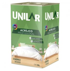 Unilar Acrílico Profissional Universo é uma tinta acrílica econômica de alta qualidade, de acabamento fosco. Indicada para pintura de superfícies internas de reboco, massa acrílica, texturas, concretos, fibrocimento, massa corrida, gesso e drywall.